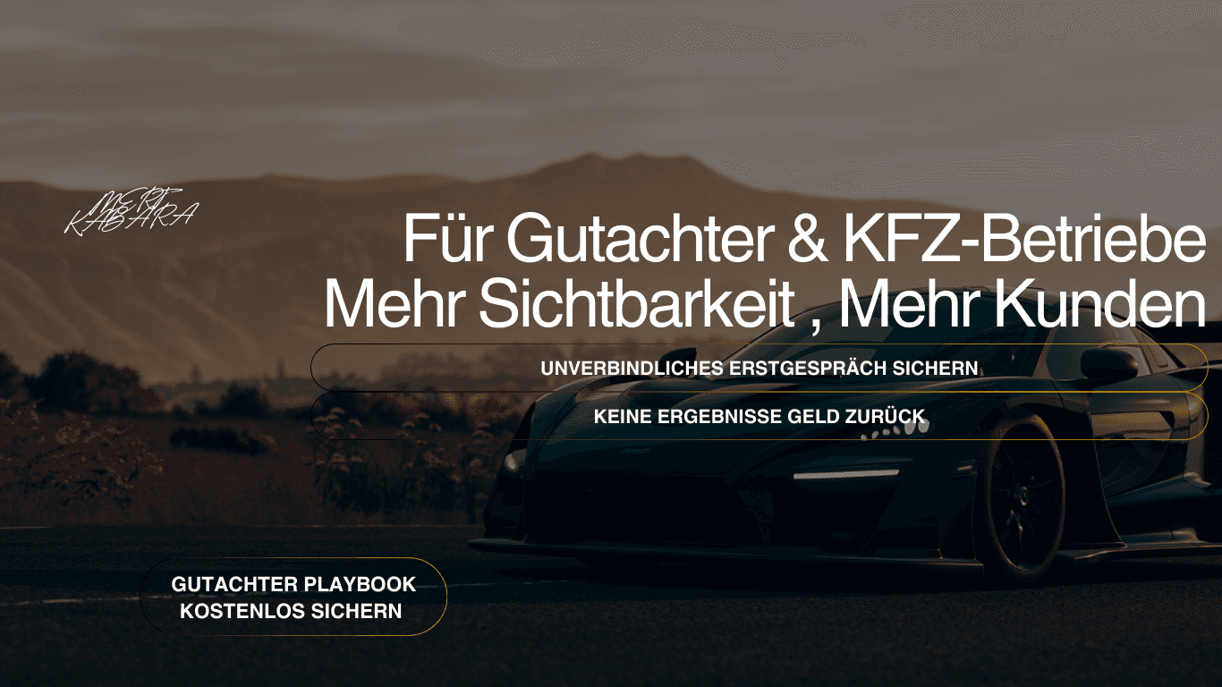 KFZ-Gutachter und KFZ-Betriebe, die online sichtbar sind und eine klare Website haben, gewinnen mehr Kunden — Mehr Sichtbarkeit, mehr Anfragen, mehr Umsatz.